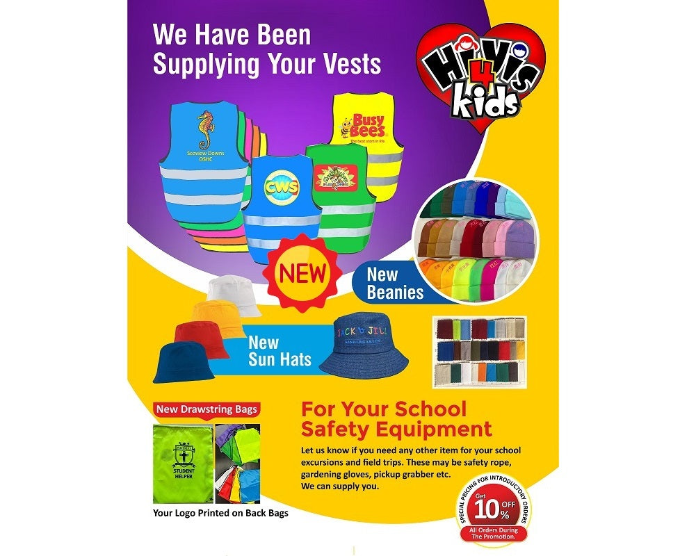 Our vests, hats, bags and accessories make them visible and safer when out on field trips.